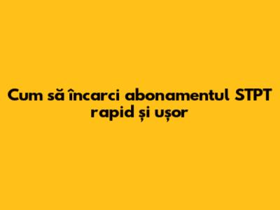 Cum Să Încarci Abonamentul STPT Rapid Și Ușor