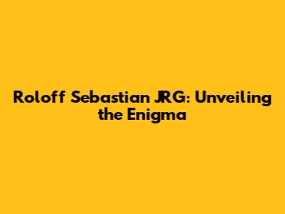 Roloff Sebastian JRG: Unveiling The Enigma